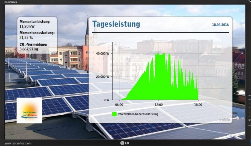 Über ein Display in unserer Cafeteria kann jeder den Ertrag und die CO2-Einsparung kontrollieren.